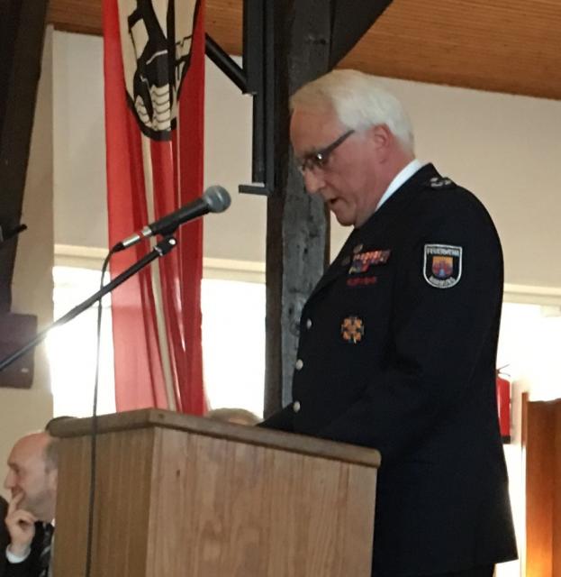 Nach den Ansprachen hatte der stellv. Wehrführer Stadtbrandinspektor Jürgen Rabbe das Wort.