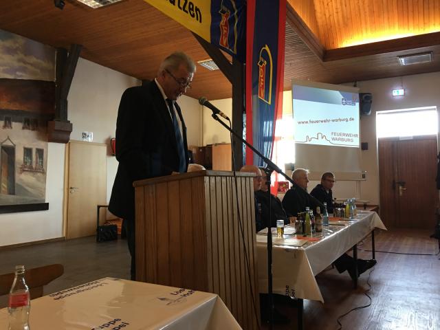 Der Leiter der Feuerwehr berichtet über das vergangene Jahr. (Foto: Feuerwehr warburg)