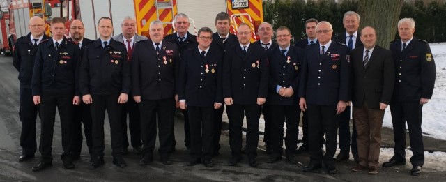 Acht Kameraden konnte STBI Jürgen Rabbe das Feuerwehrehrenzeichen in Silber für 25 jährige Zugehörigkeit in der Feuerwehr und 13 Kameraden das Feuerwehrehrenzeichen in Golf für 35 Jahre verleihen.