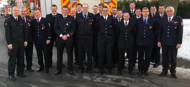 Die neue Führung des Löschzug Warburg BI Andreas Flore, STBI Markus Müller und BI Tobias Berendes Beförderung zum Unterbrandmeister: OFM Christoph Schnückel (Calenberg), OFM Patrick Behne (Dössel), OFM Torben Sauerland (Herlinghausen), HFM Martin Fischer (Ossendorf), OFM Steven Forster (Scherfede), OFM Florian Amrehn (Warburg) und OFM Andreas Anger (Welda) Beförderung zum Brandmeister: UBM Stefan Stollburges (Daseburg), UBM Carsten Reineke (Dössel) und UBM Dirk Derenthal (Ossendorf) Beförderung zum Oberbrandmeister: BM Nils Scherbaum (Daseburg), BM Christian Moors (Menne), BM Mischa Engelbracht (Warburg) und BM Dominik Göbel (Wormeln) Beförderung zum Hauptbrandmeister: OBM Andreas Strathaus (Hohenwepel), OBM Martin Nagel (Scherfede), OBM Marc Engemann (Warburg) und OBM Tobias Branke (Wormeln) Beförderung zum Brandinspektor: OBM Daniel Strathaus (Hohenwepel) Beförderung zum Brandoberinspektor: BI Holger Mantel (Calenberg) (Foto: Feuerwehr Warburg)
